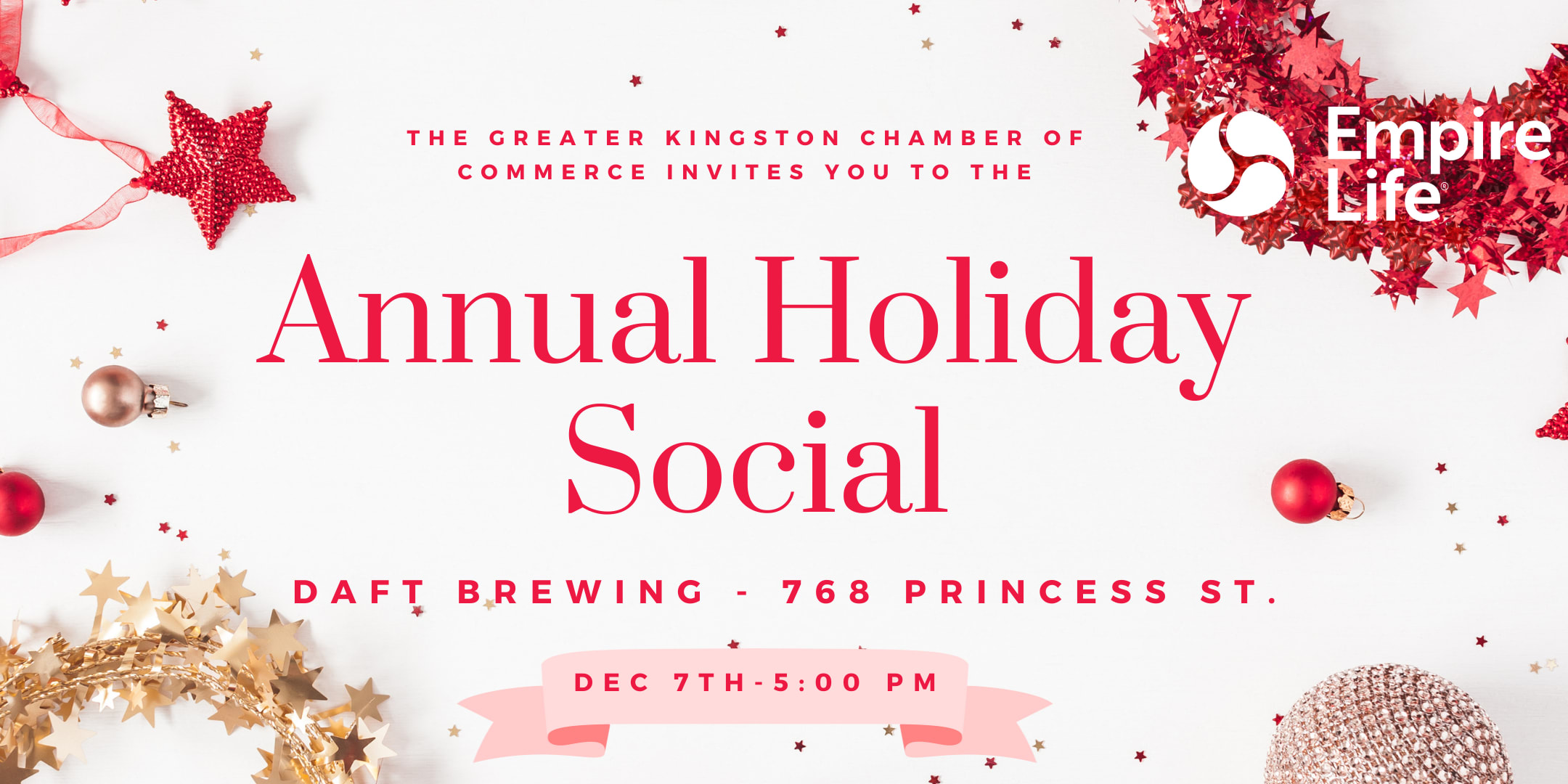 Join us Thursday, December 7th at 5:00 pm at Daft Brewing Company (768 Princess Street, Kingston) for our Annual Holiday Social!